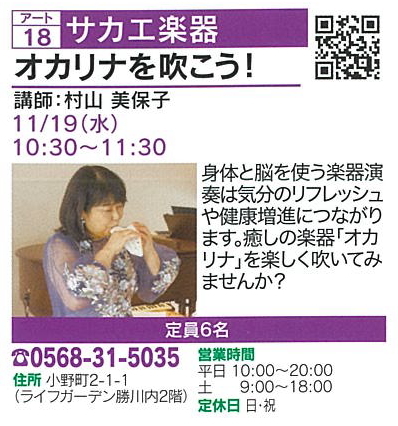 毎年好評いただいております「オカリナを吹こう!」の講座、