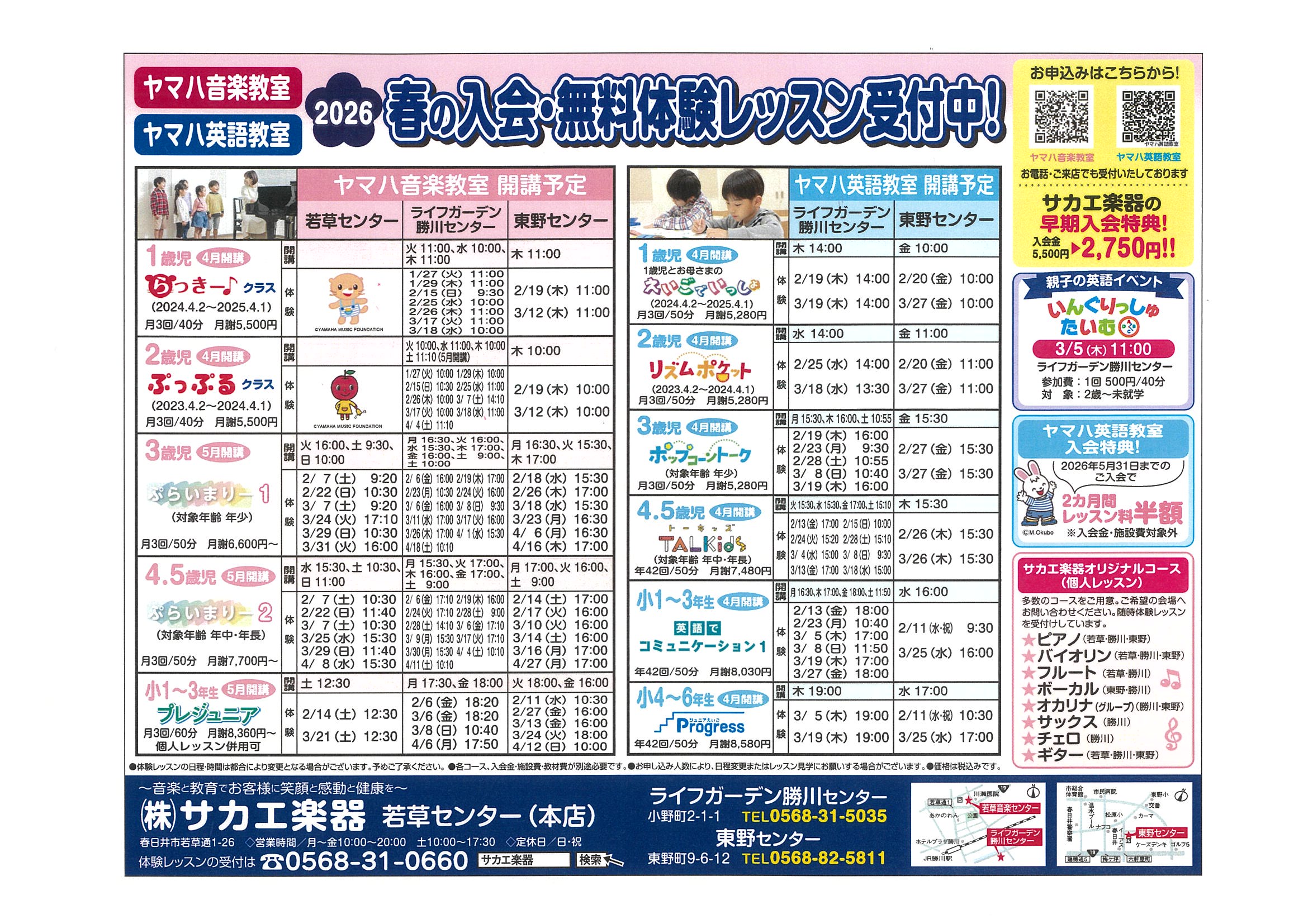 2026年春開講のヤマハ音楽教室、ヤマハ英語教室の体験レッスン案内が本日みなさまのポストに届いております、ハピなび春日井「裏面」に掲載されました。
