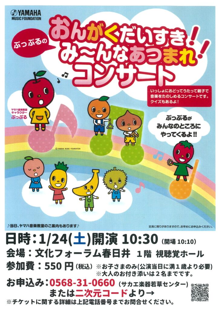 【イベント】1月24日(土)おんがくだいすき!ぷっぷるのみ~んなあつまれ!コンサート